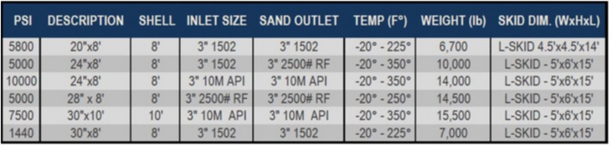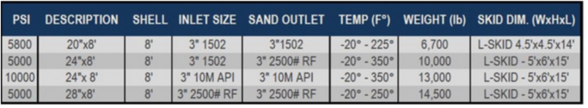 As TSI's most commonly employed sand separator in the field, this design uses gravitational and centrifugal force for removal of solids.